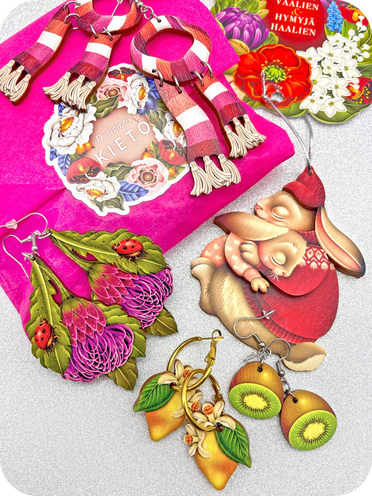 Kuvitus ja suunnittelu on Hiltusen omaa käsialaa, eikä tekoälyllä ole osuutta asiaan. Valmistettu Suomessa suomalaisesta kartongista.